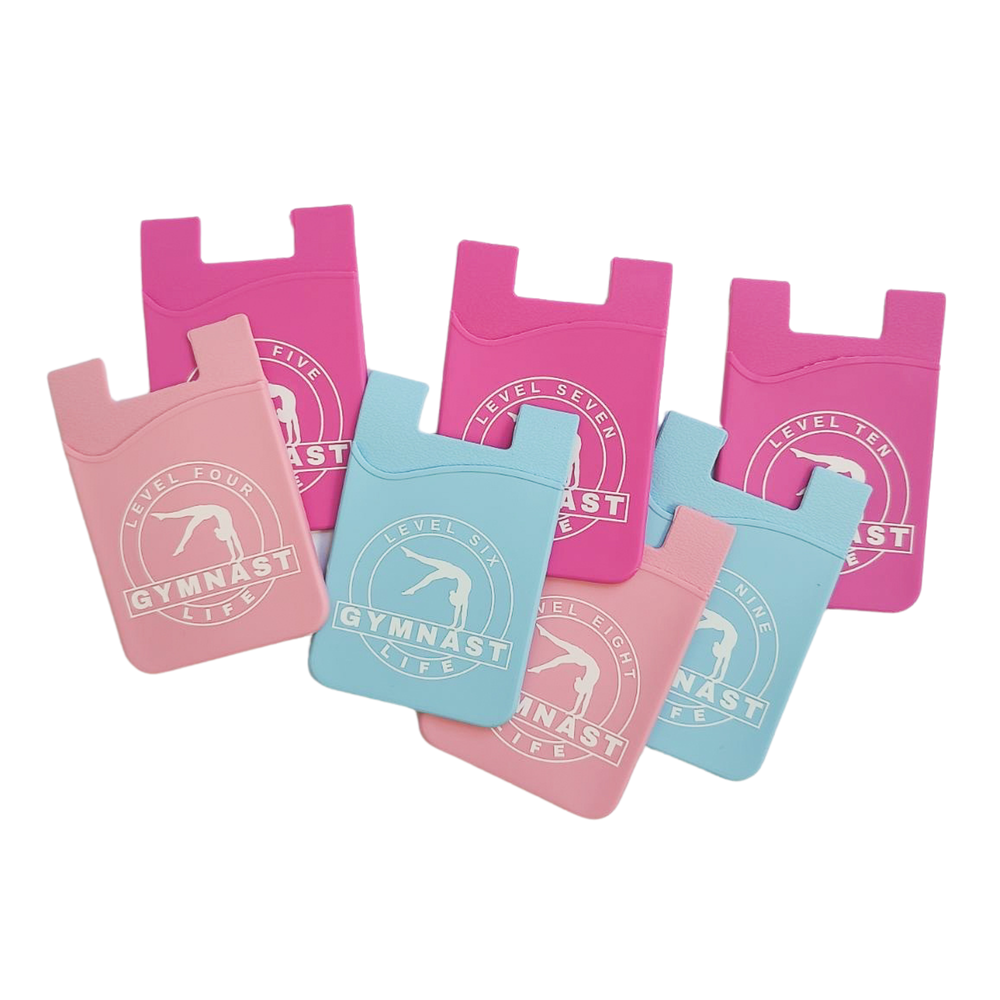 Keep your essentials close while showing off your love for gymnastics! This stylish cell phone card holder is designed for gymnasts on the go. Made from durable, high-quality materials, it securely attaches to the back of your phone, allowing you to carry your cards, cash, and ID effortlessly. This bundle includes all Levels 4-10.