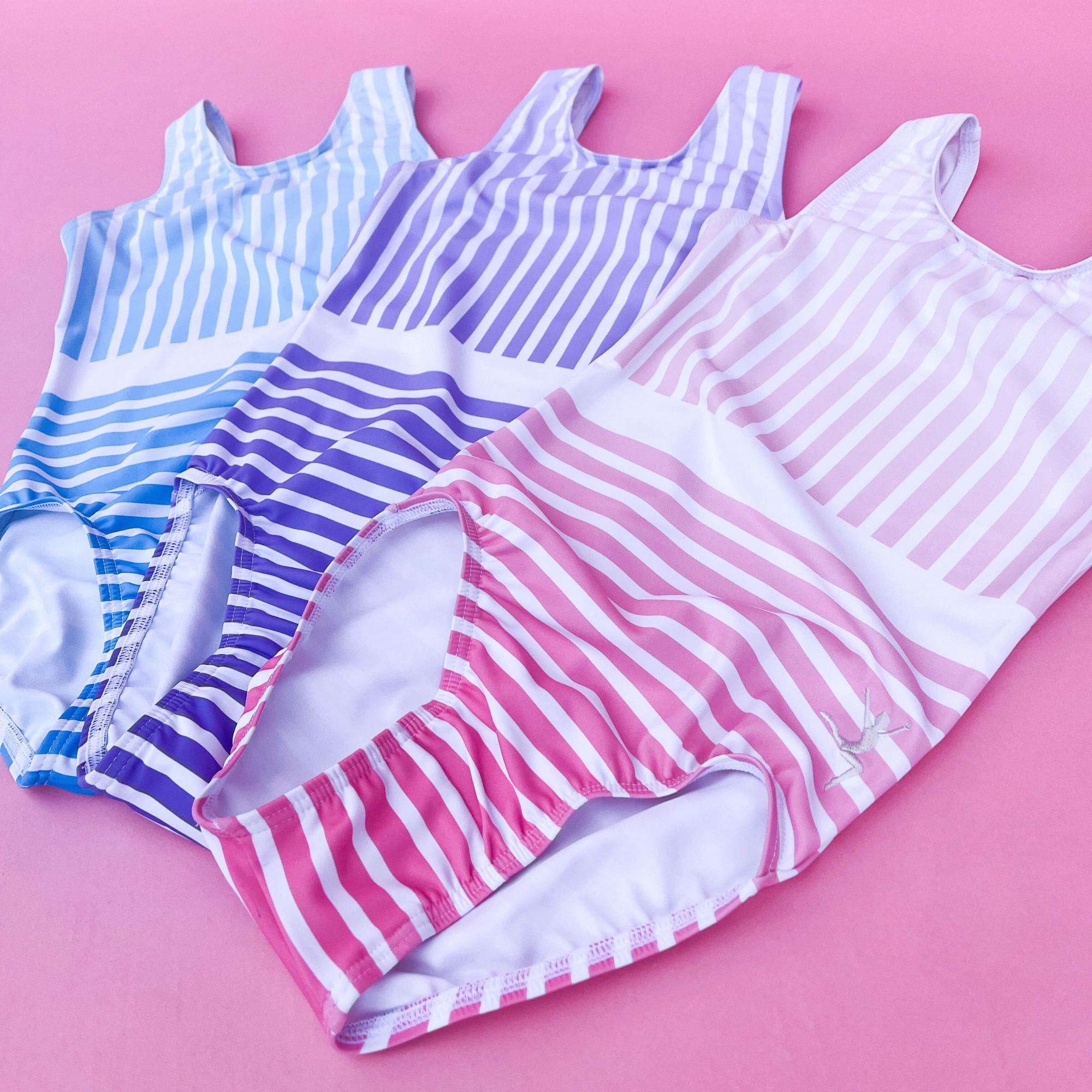 These stunning leos gives off beach vibes and are even more beautiful in person! Buttery soft and perfect for practice, they will quickly become your gymnasts favorite leotards.